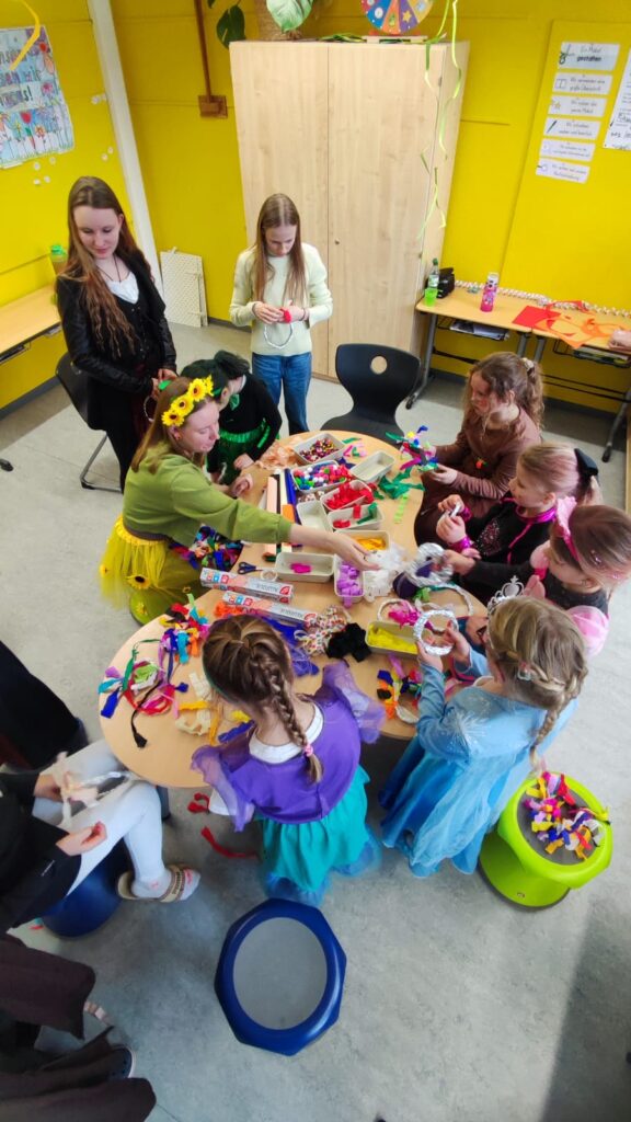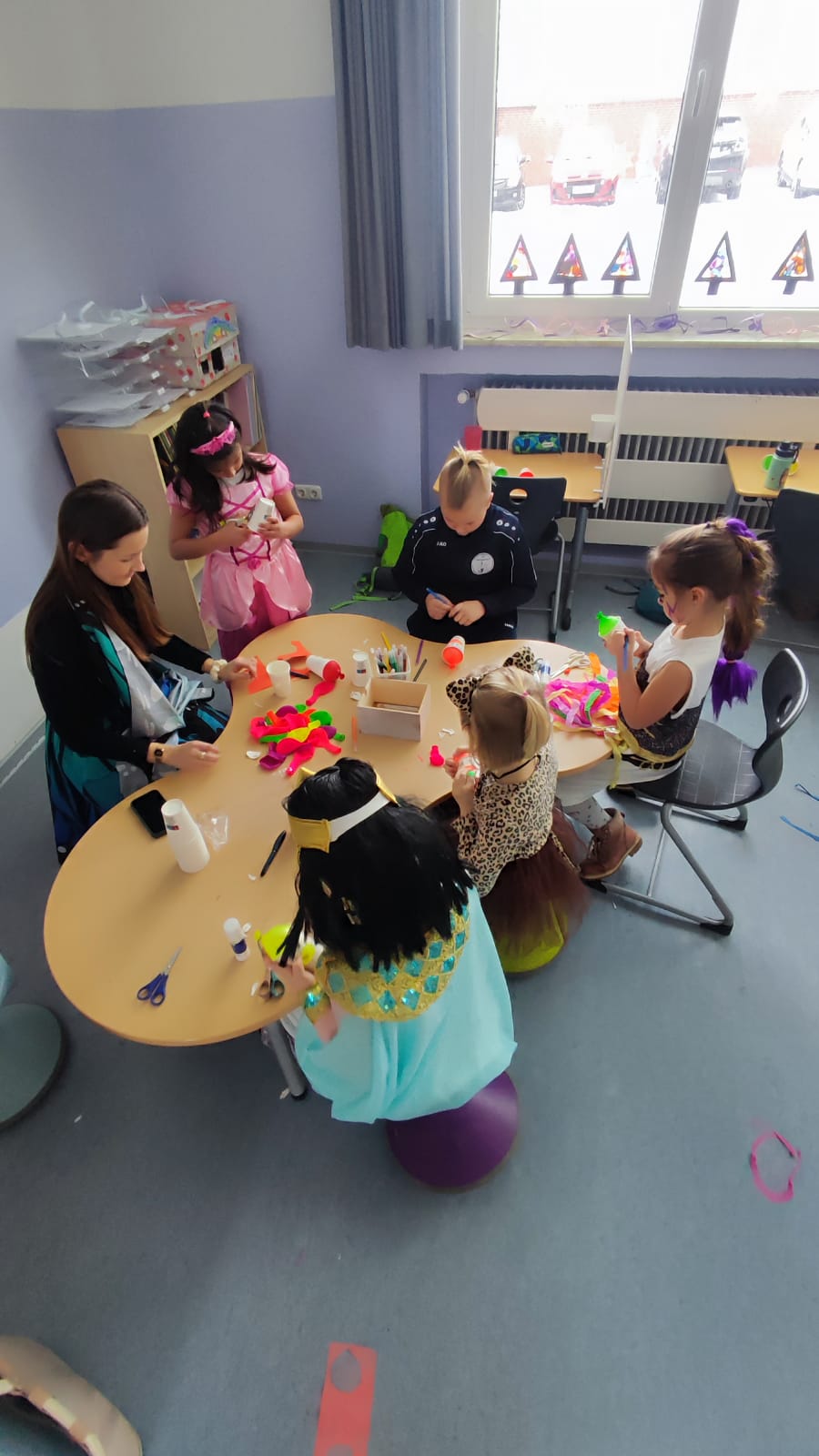 Anschließend warteten zahlreiche freie Angebote auf die Kinder. Ob Basteln, Tanzen in der Schwarzlichtdisco oder Toben in der Bewegungslandschaft in der Sporthalle. Es wurde viel gelacht, getanzt und gefeiert.